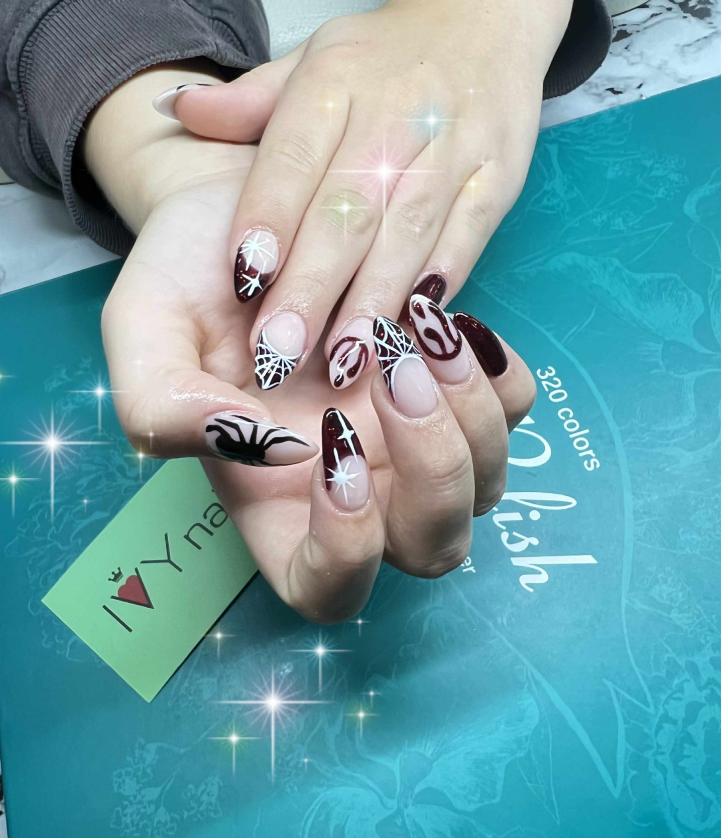 Akryl/gele med Cat eyes farve 600,-